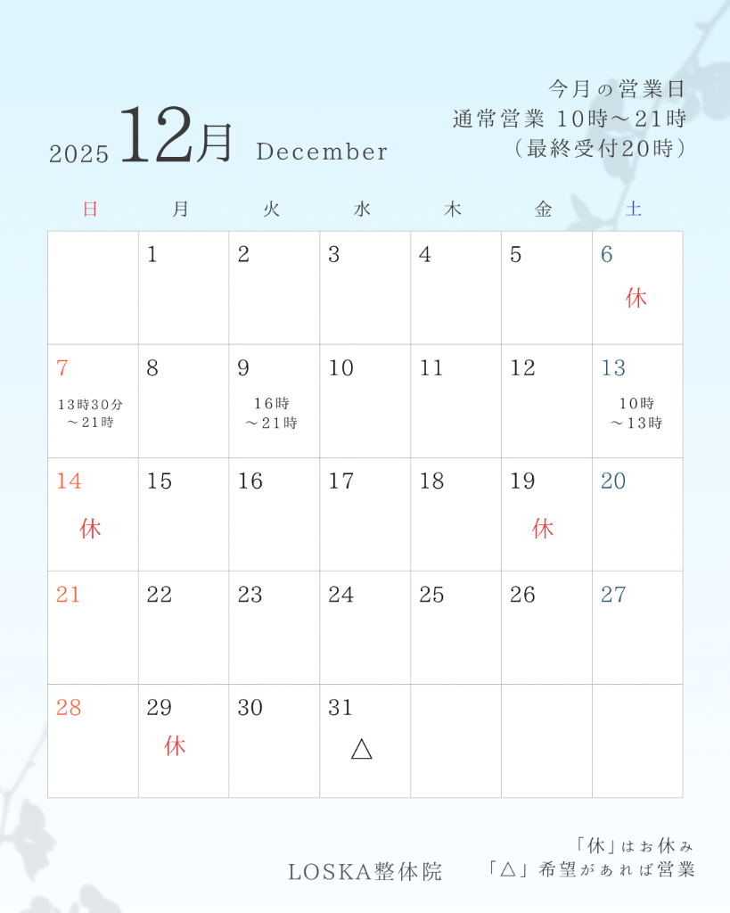 浜松市浜名区に店舗を構える“LOSKA整体院(ロスカ)”は、リラクゼーションでほぐすのではなく改善を目指す整体院です。