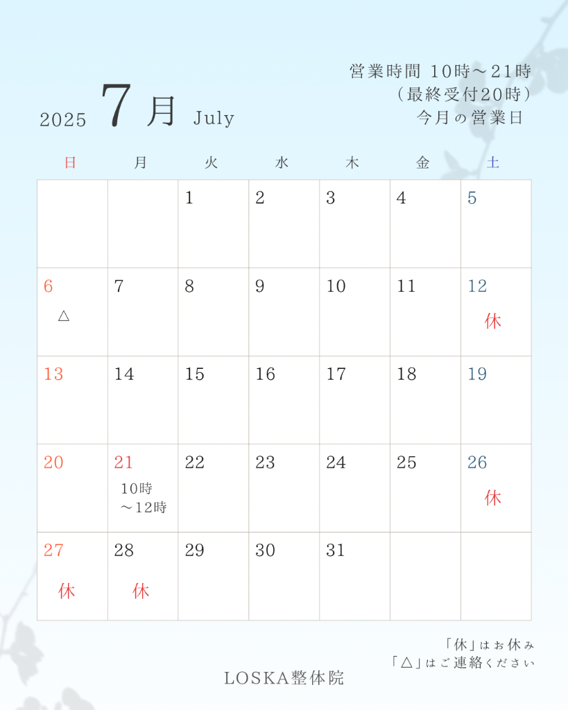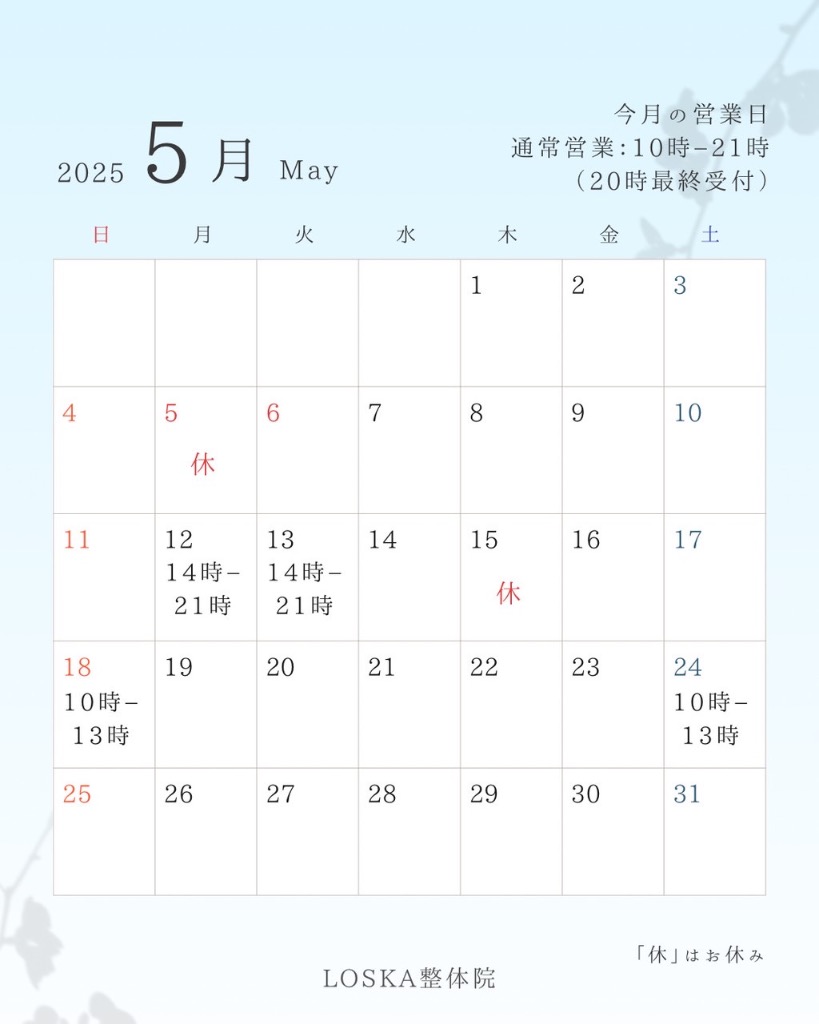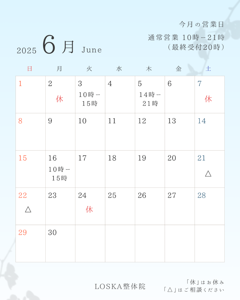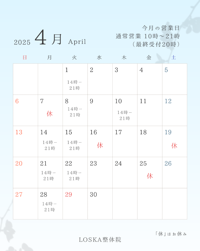いつもLOSKA整体院をご利用いただきありがとうございます。
