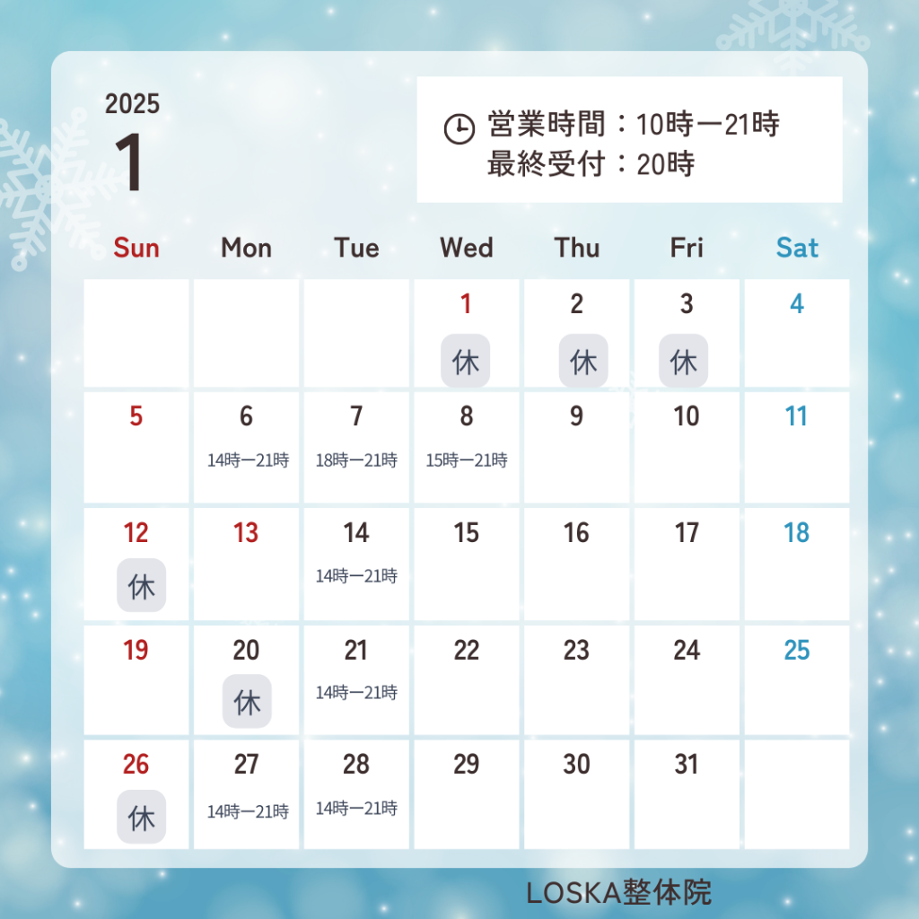 昨年はLOSKA整体院をご利用いただき、本当にありがとうございました。